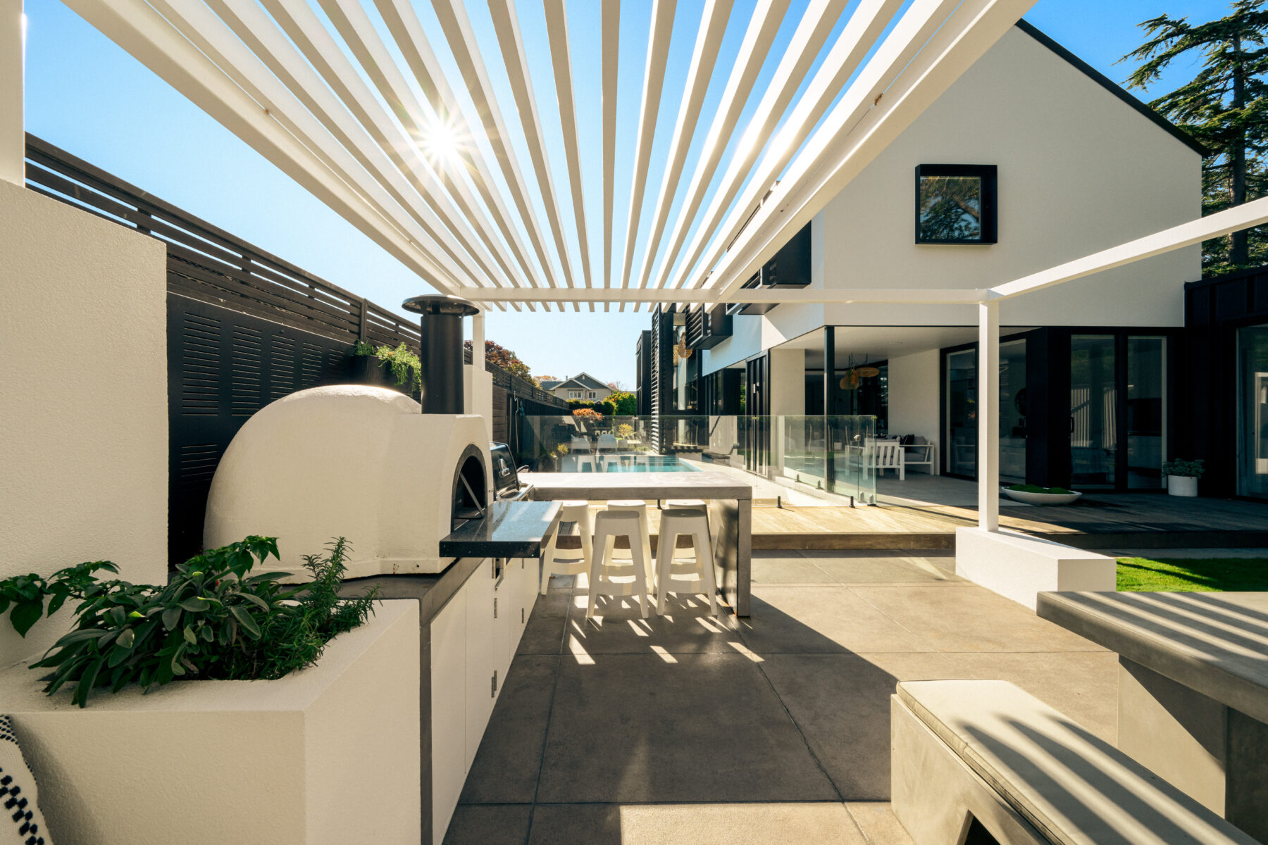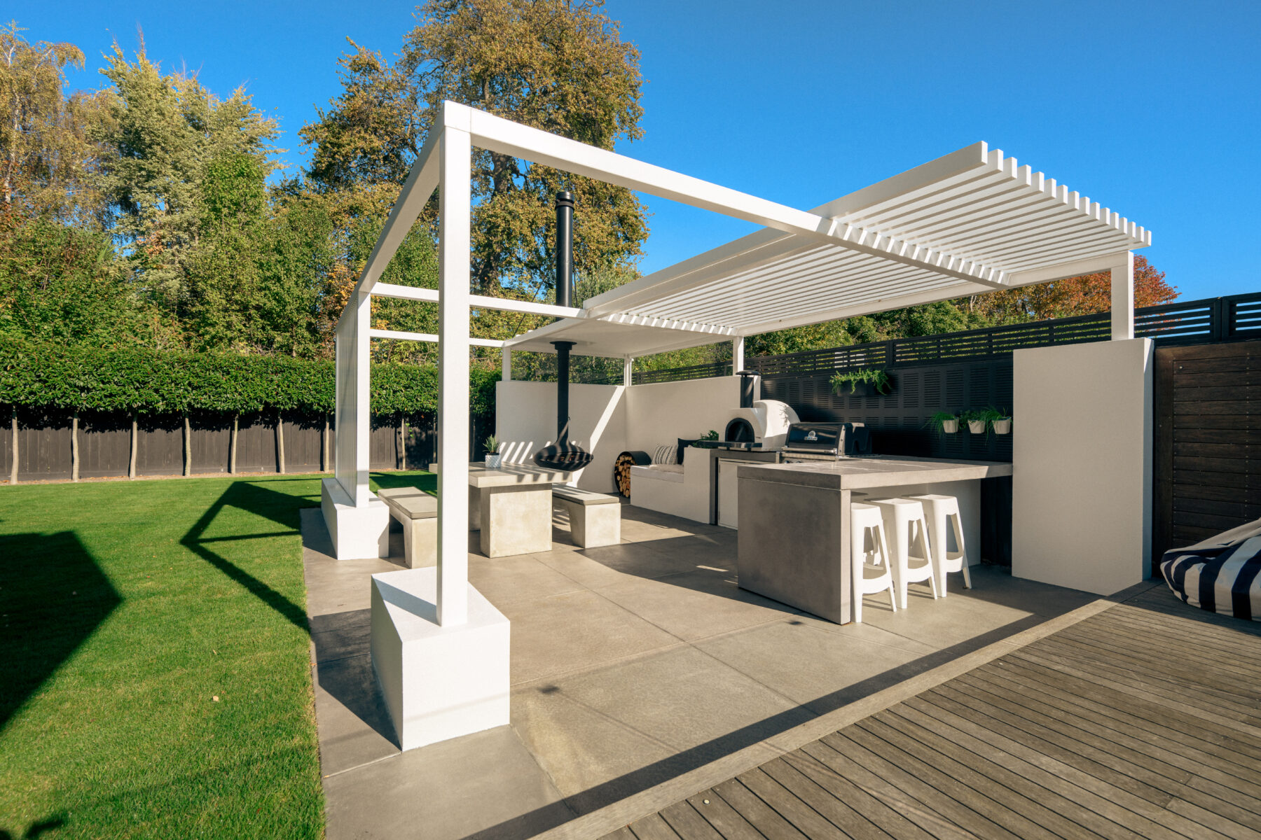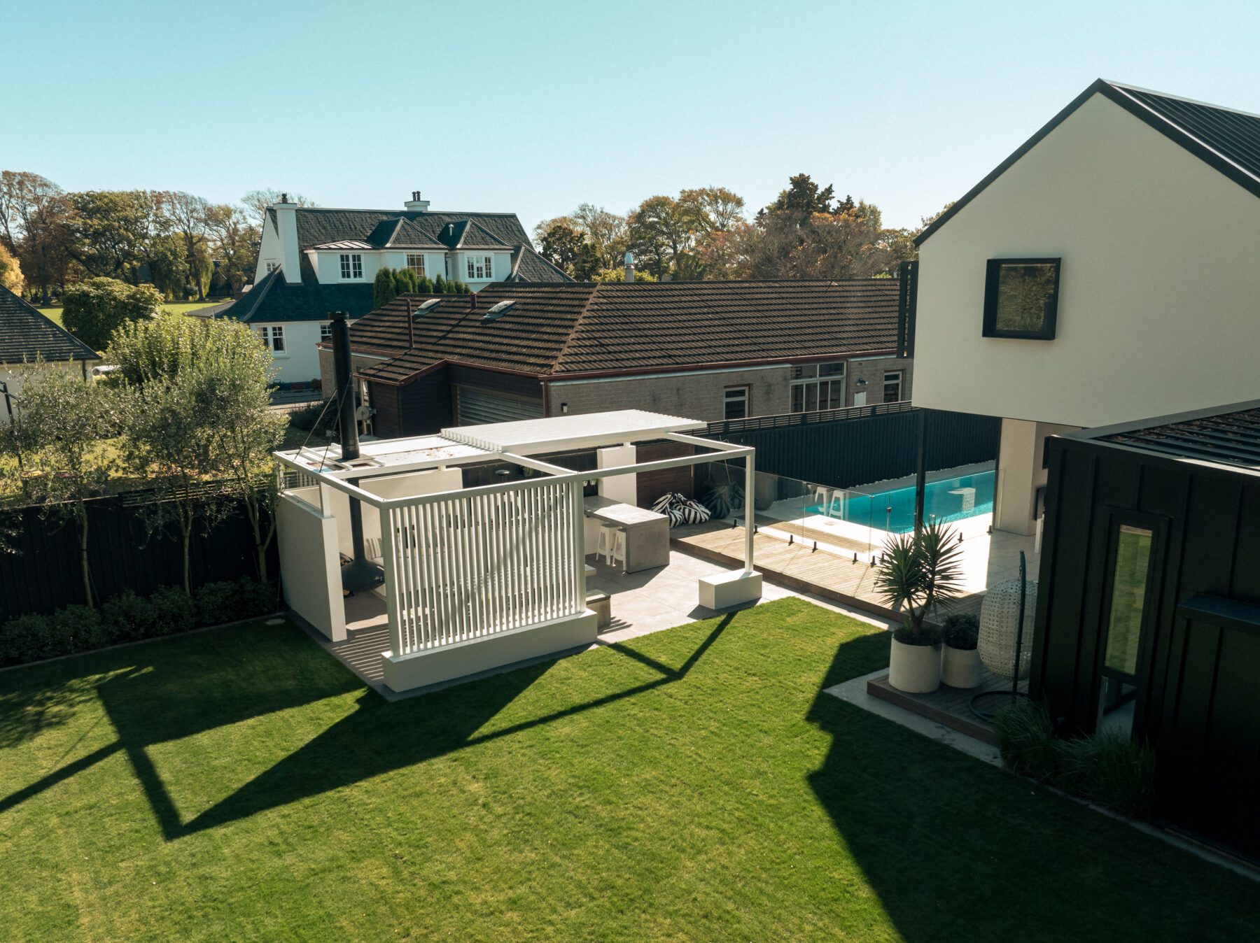 This project focused on creating a functional, visually striking outdoor living space that supported the homes existing amenities while being precisely located to take full advantage of the Canterbury sun.